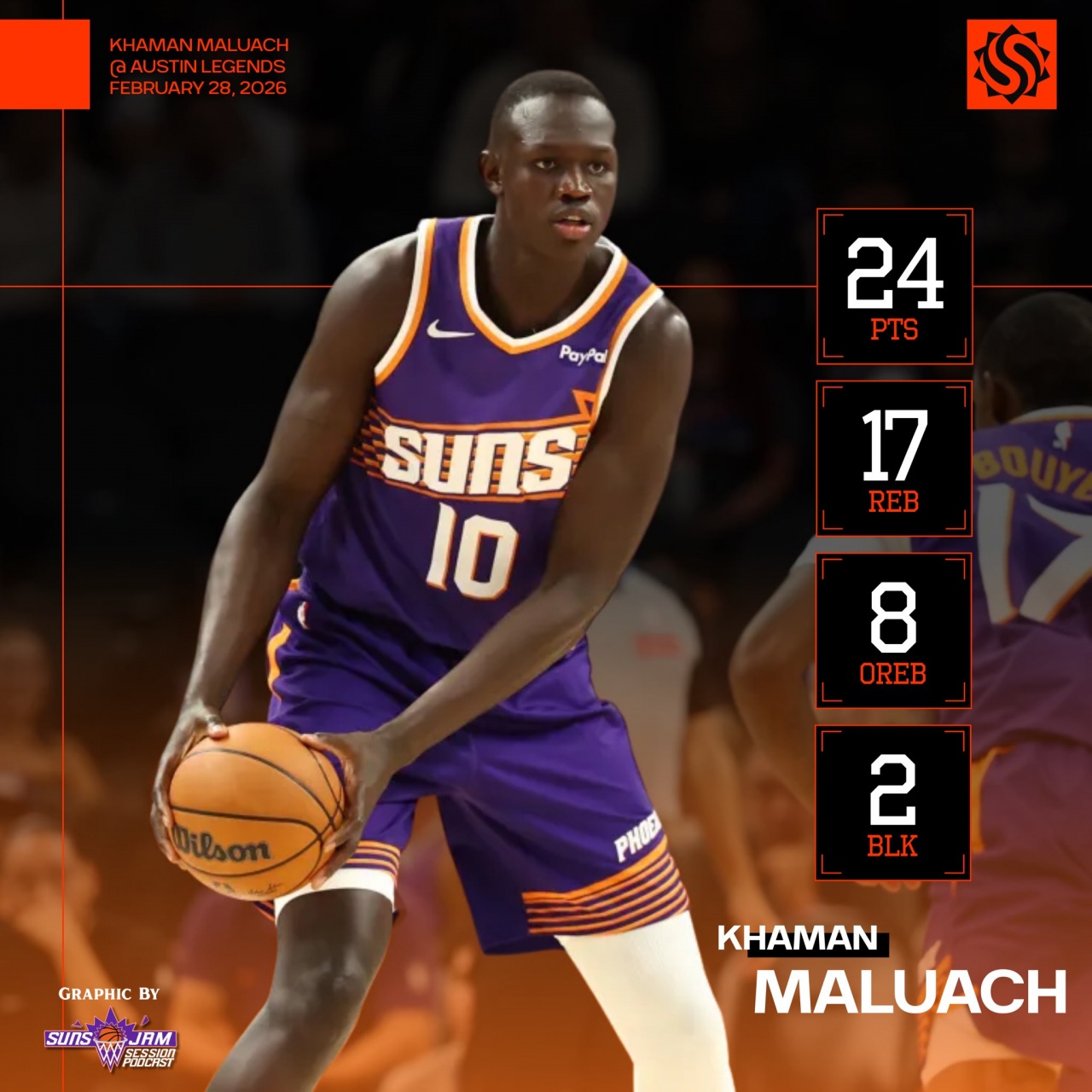 此役,太阳10号秀、中锋马卢阿奇表现不俗,2米16的他甚至还秀起了砸篮板接球暴扣的好戏。