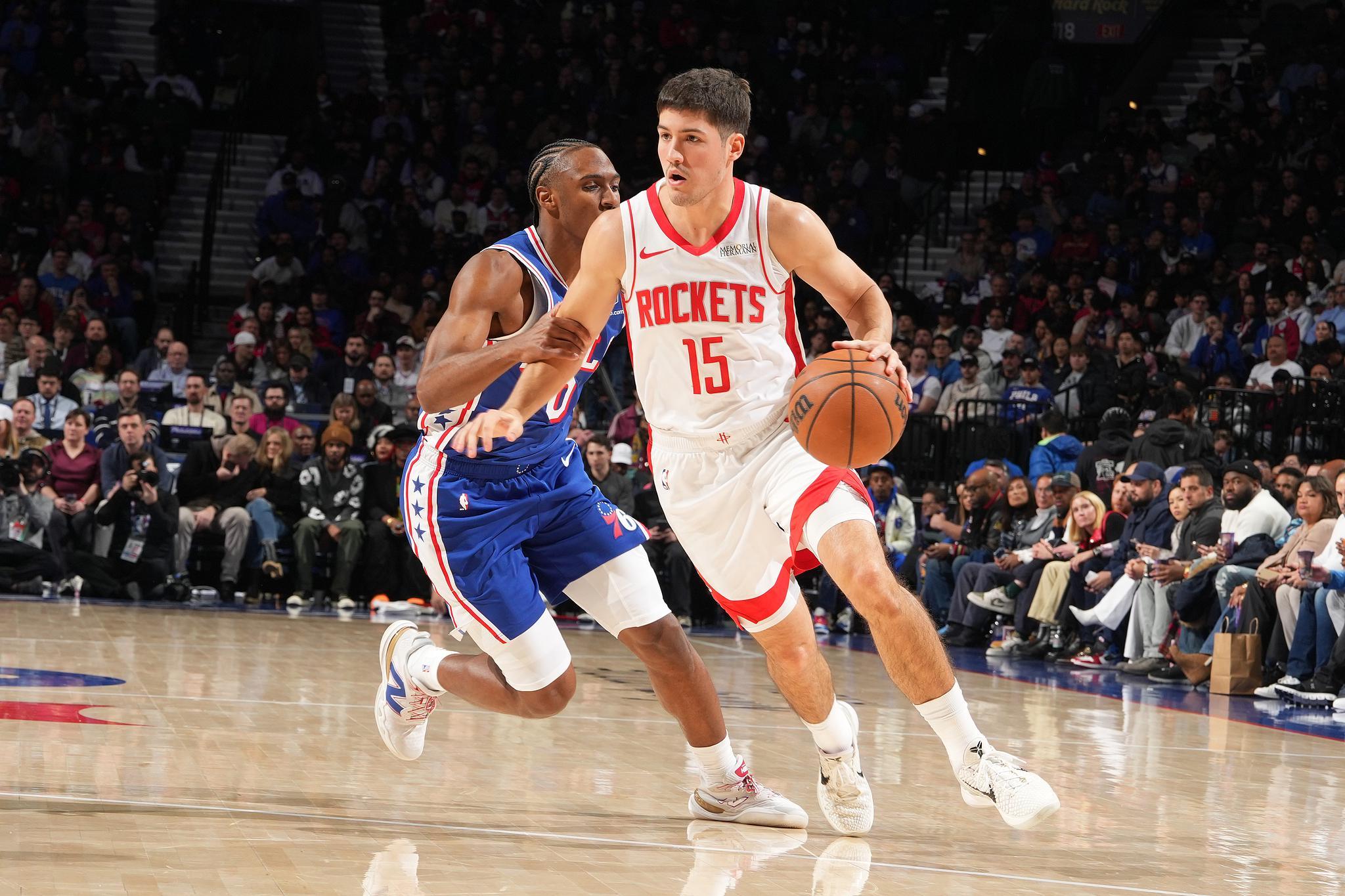 但末节火箭队再次依靠谢泼德的神奇发挥完成反超,无奈决胜时刻乌度卡自废武功,火箭队回到老样子,依靠明显的干扰球将比赛拖入加时后,火箭队还是以122-128不敌76人无缘4连胜。